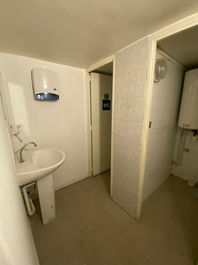 Sanitaires et point d'eau, triphasé climatisation sur une partie du local.